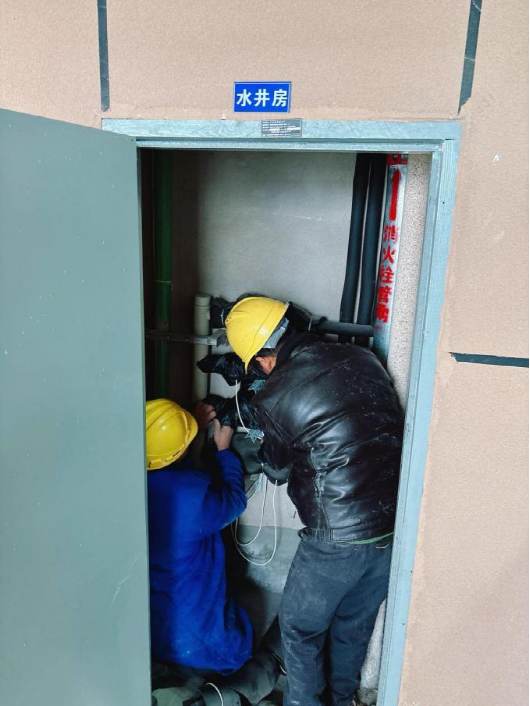 聞“雪”而動,保障在前。全面提高對城市及農村供水主管網、供水設施、排水設施、管道井、二次泵房的巡查頻次,重點對連廊式、鑲墻式、被陰面裸露小口徑管道通過加裝水表防凍保溫套、包扎表前表后管網保溫管、地埋表填砂、封堵管道井門等方式進行防凍保護,防止供水設施及管網凍結、凍裂。12月,水務公司共計開展地埋表井填砂保溫作業5424次,水表水管“穿衣戴帽”及包扎作業2826次,封閉管道井門作業13673扇。