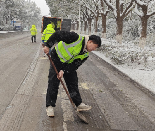 下午3點多,朱家橋片區管網運維部收到經開區經管處發出的支援訊息后,迅速組織“除雪突擊隊”,以雪為令,與時間賽跑,全力以赴做好道路掃雪鏟冰工作,確保居民正常通行。