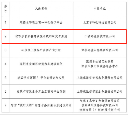 “城市水管家智慧調度系統的研發與應用”入選《水務行業信息技術應用創新典型案例集》