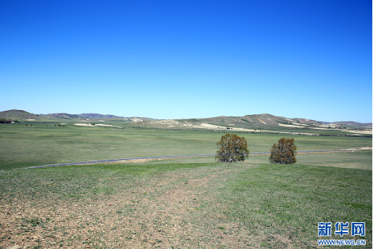初夏時(shí)節(jié),赤峰市克什克騰旗境內(nèi)的渾善達(dá)克沙地泛起綠意(5月15日攝)。新華網(wǎng)石毅 攝