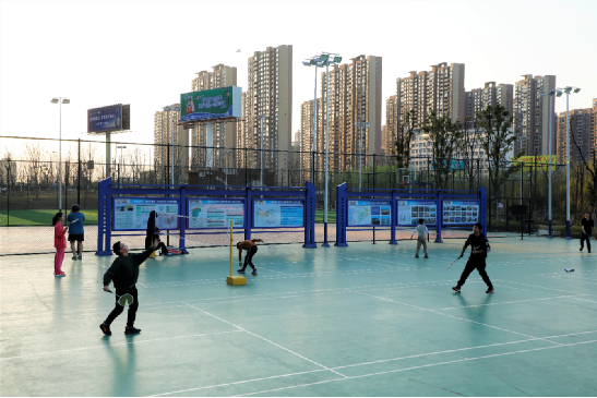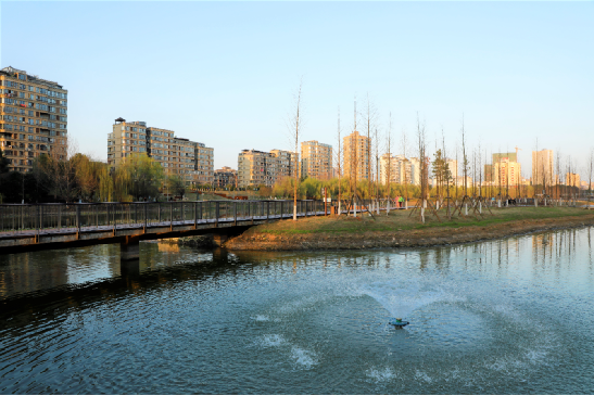 “我們治理河道講究統(tǒng)籌兼顧、因地制宜。該河段河底泥淤積嚴(yán)重,大量垃圾淤塞其中,我們將清理出來的淤泥壓實(shí)成泥餅,作為人工綠島的基質(zhì),在上面栽種水生植物,將其打造成濱河休閑地帶。”譚亮介紹,河道干凈了,環(huán)境變好了,園區(qū)內(nèi)配備了球場(chǎng)、棧道、公廁等基礎(chǔ)設(shè)施,附近居民在茶歇飯后可以來這里散步休閑、健身娛樂。
