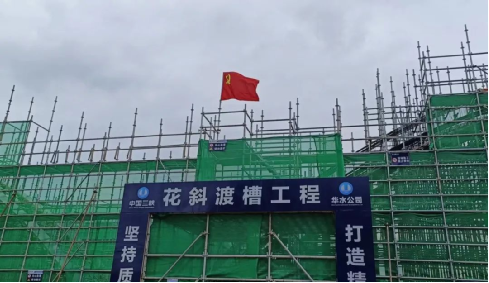 黨旗在寧都縣梅江灌區(qū)項(xiàng)目現(xiàn)場(chǎng)高高飄揚(yáng)